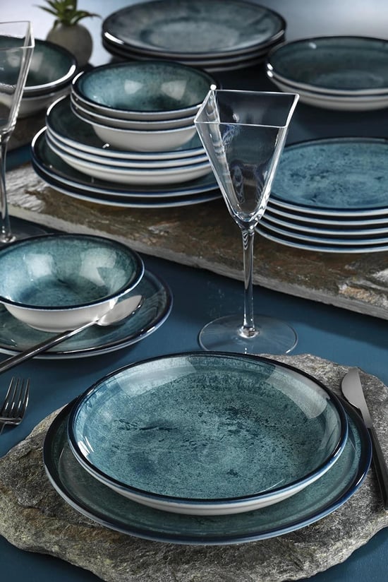 Kütahya Porselen’in Blue Stone Nano Krem koleksiyonu, 6 kişilik yemek seti arayanlar için ideal bir tercihtir. Modern ve zarif yuvarlak tabaklar şıklığı ve dayanıklılığı bir araya getiriyor. Porselen malzeme ile uzun ömürlü kullanım sağlar, desenli tasarımı ise sofralarınıza estetik bir hava katar.